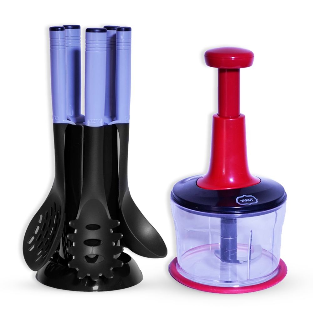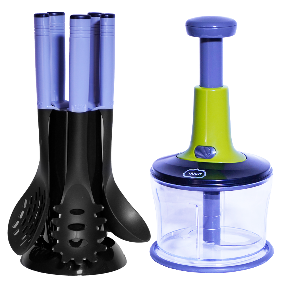 Pour les ustensiles de cuisine; ils sont fournit avec un support de rangement très pratique pour gagner plus de place sur votre comptoir.