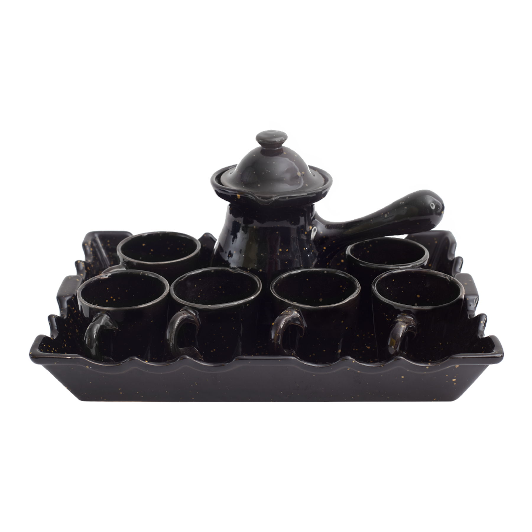 Un service à café Turc de 9 pièces noir et doré .